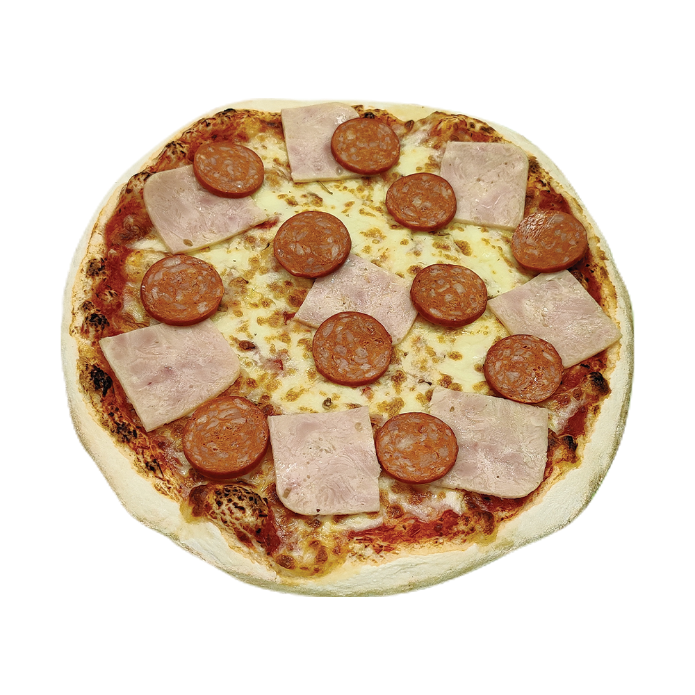 Retrouvez les saveurs incontournables d’une vraie pizza italienne sur une base tomate savoureuse. La mozzarella fondante se marie parfaitement avec le chorizo légèrement relevé et le jambon de qualité, pour une combinaison simple mais irrésistible.